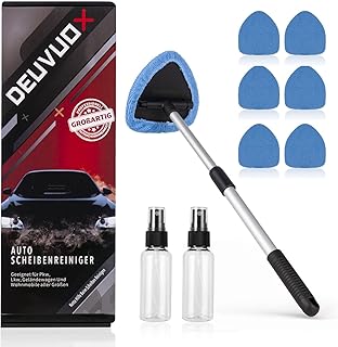 Für die regelmäßige Reinigung: Ein hochwertiger Magnetreiniger mit passender Stärke für die Scheibendicke ist ideal. Die Anschaffung lohnt sich, da günstige Modelle oft zu schwache Magneten haben und dadurch leicht abrutschen.