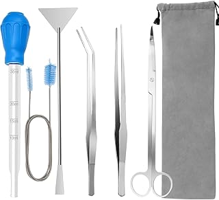 Sandglätter ermöglichen es, sandartige Substrate perfekt zu ebnen und zu strukturieren. Fadenscissors sind ideal zum Beschneiden von feinen, fadenförmigen Pflanzen wie Moosen. Spritzen mit langen Aufsätzen helfen bei der gezielten Düngung bestimmter Pflanzengruppen oder beim Entfernen von Detritus aus schwer zugänglichen Stellen.
