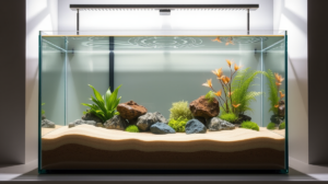 Für ein minimalistisches Aquascape eignen sich besonders feine, helle Sande oder gleichmäßige, dunkle Bodengründe. Diese bieten eine ruhige Basis für die Gestaltung. Vermeiden Sie bunte oder ungleichmäßige Substrate, da diese Unruhe ins Bild bringen. Ein hochwertiger Aquarium Bodengrund ist eine Investition, die sich in der Gesamtwirkung deutlich bemerkbar macht.